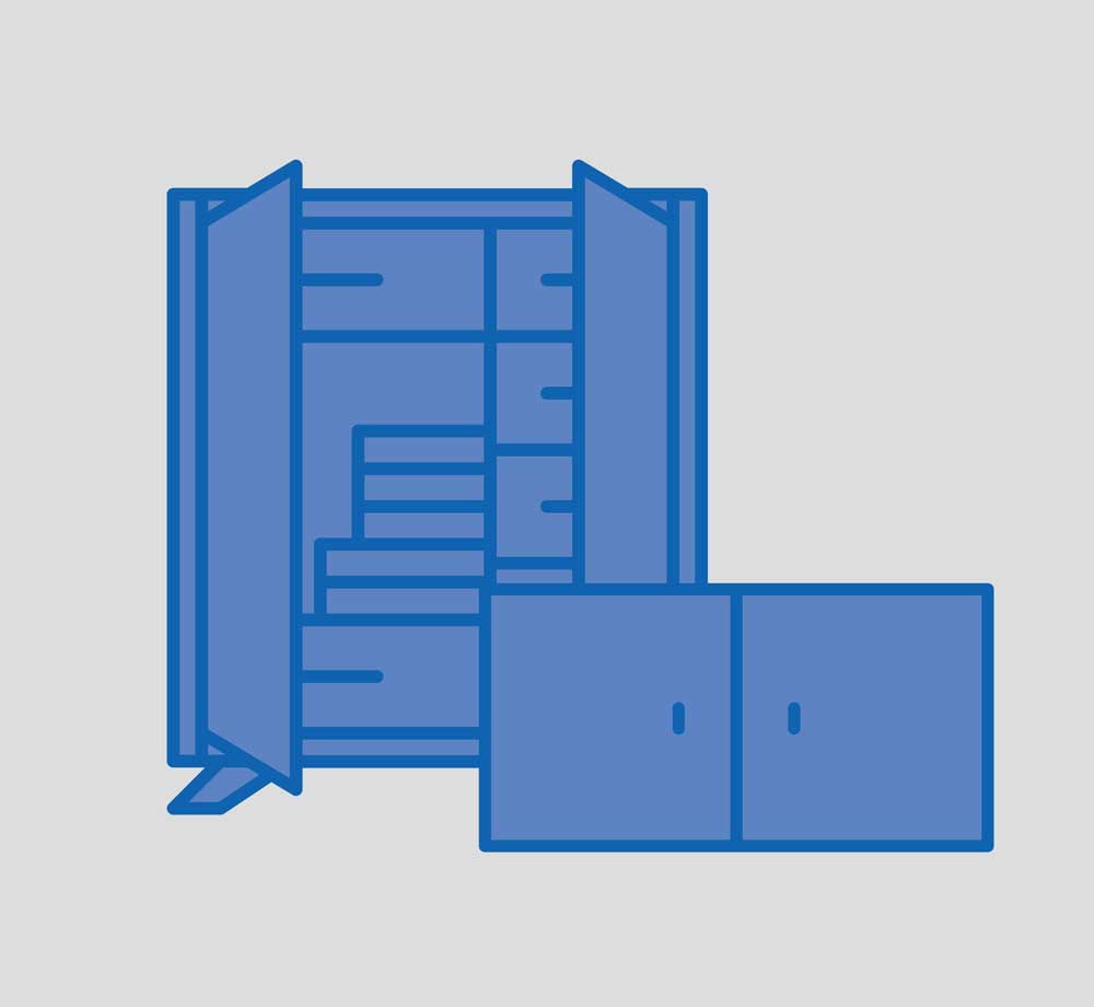 Armadi realizzati in acciaio al carbonio verniciato a polvere. Dotati di ripiani interni, vasca di raccolta, chiusura di sicurezza e cartelli identificativi di sicurezza.