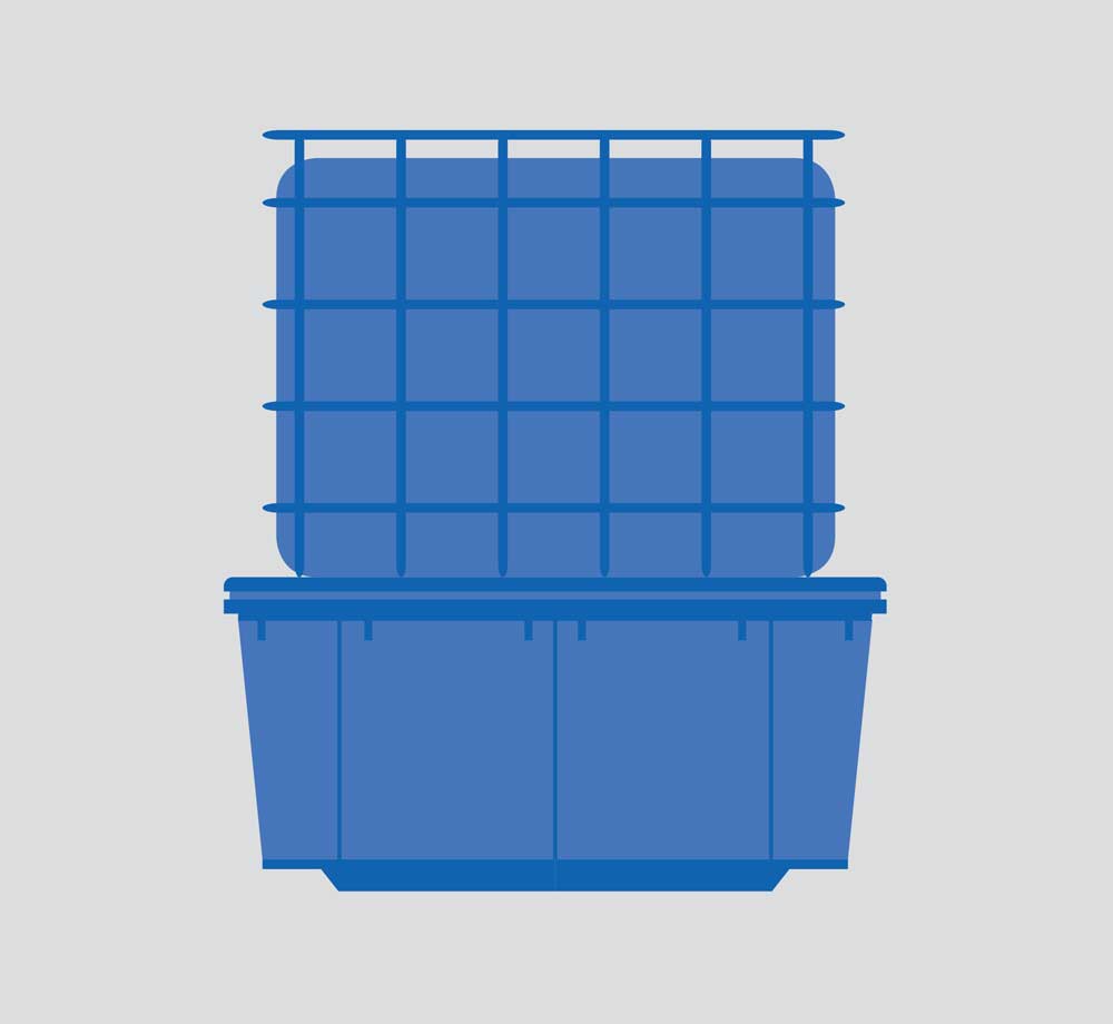 Serie di vasche di contenimento per fusti o taniche realizzate in polietilene e dotate di gligliato in polipropilene. Le vasche sono anche pallettizzate per agevolare la movimentazione a vuoto e la pulizia.