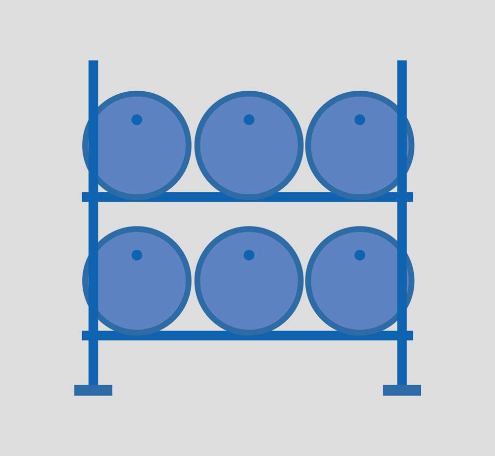 Appositi supporti metallici o in polietilene permettono la realizzazione personalizzata di zone di stoccaggio adattandosi alle singole esigenze.